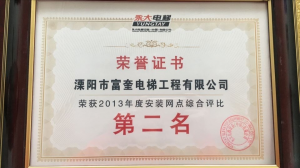 溧陽市富奎電梯工程有限公司 溧陽市富奎電梯工程有限公司是于二OO八年一月九日在原前身溧陽市電梯工程公司基礎(chǔ)上成立的,是專業(yè)從事電梯銷售安裝維修、保養(yǎng)的企業(yè)。是國家質(zhì)監(jiān)總局頒發(fā)的特種設(shè)備安裝、改造、維修A級安裝許可證單位。公司組織機構(gòu)實行總經(jīng)理負(fù)責(zé)制,公司下設(shè)管理部、銷售部、安裝維修部、質(zhì)安部、財務(wù)部,公司另外設(shè)十二個分公司:四川分公司、江蘇分公司、上海分公司、浙江分公司、湖南分公司、遼寧分公司、山東分...